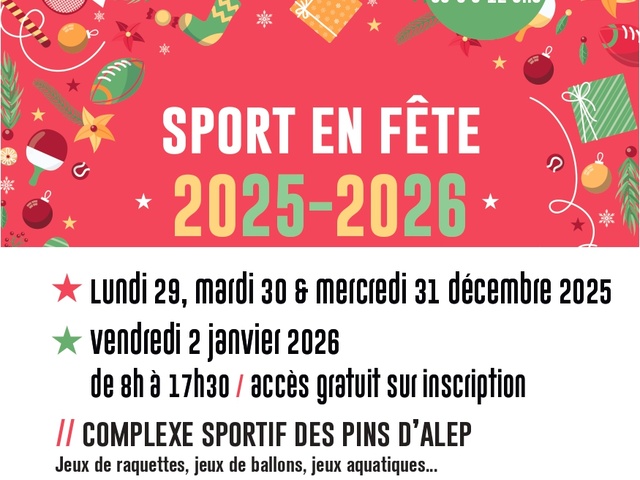 et le vendredi 02 janvier 2026 au complexe sportif des Pins d'Alep de 8h à 17h30